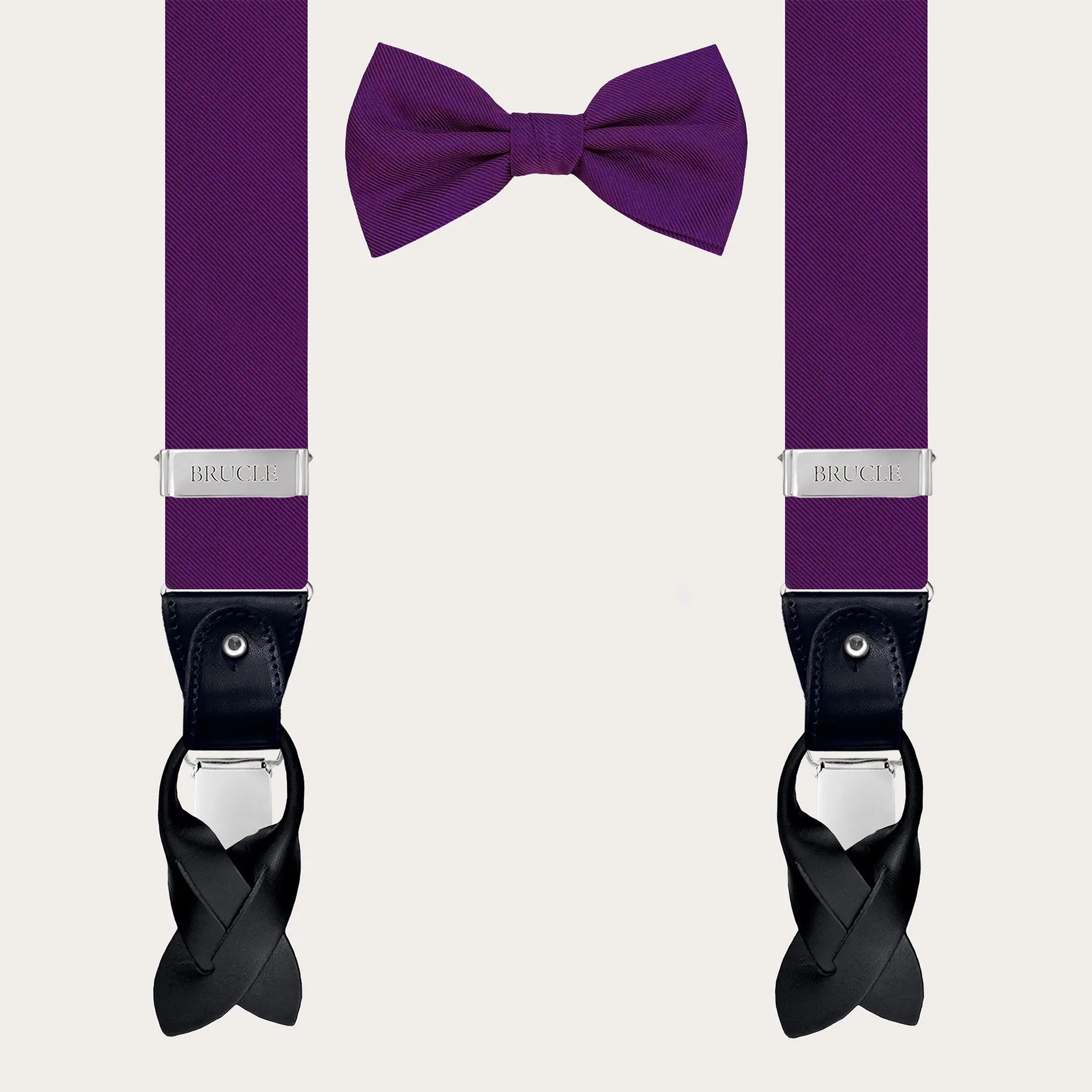 Abgestimmte Hosenträger und Fliege aus violetter Jacquard-Seide