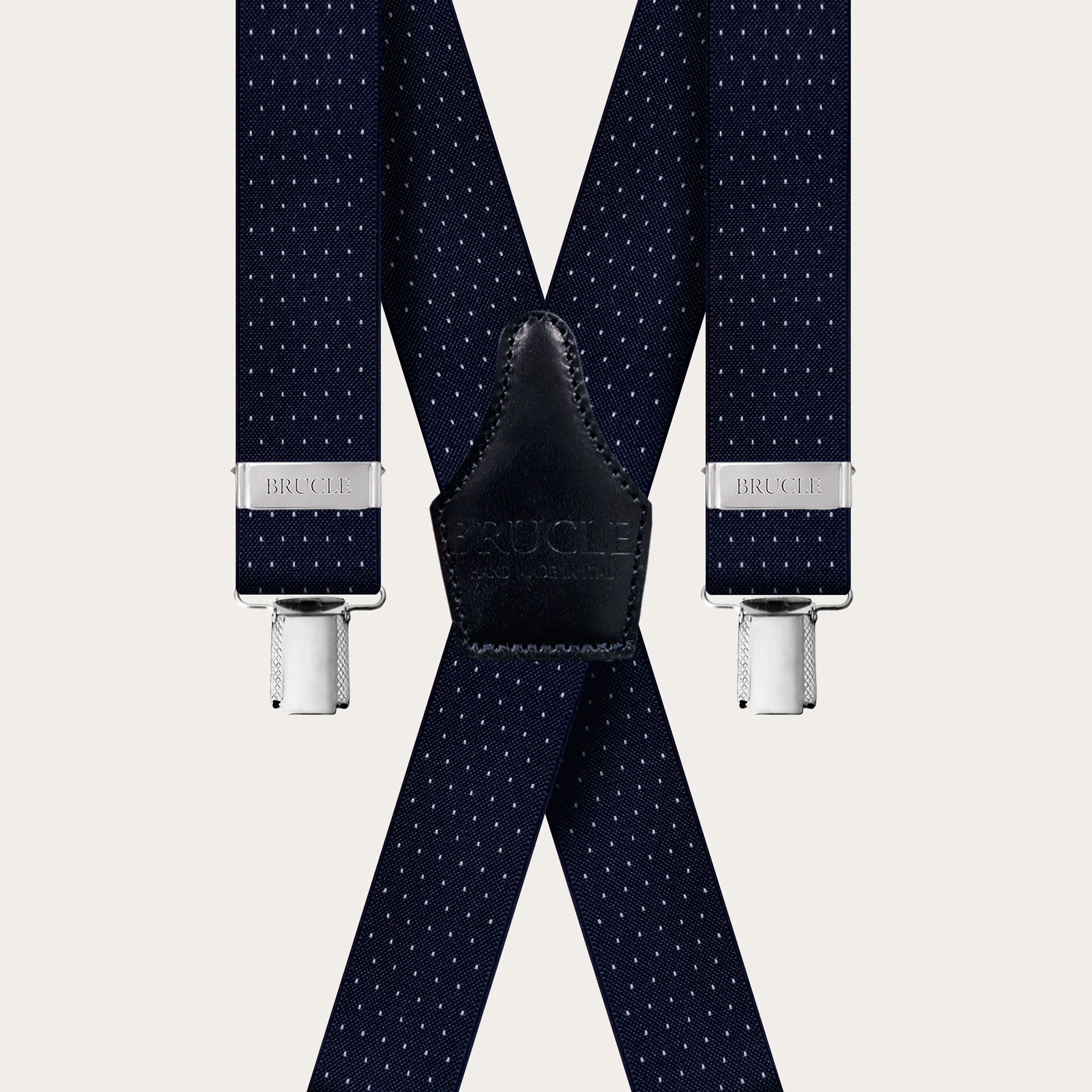 Elastische Hosenträger in X-Form mit Clips, blau gepunktet