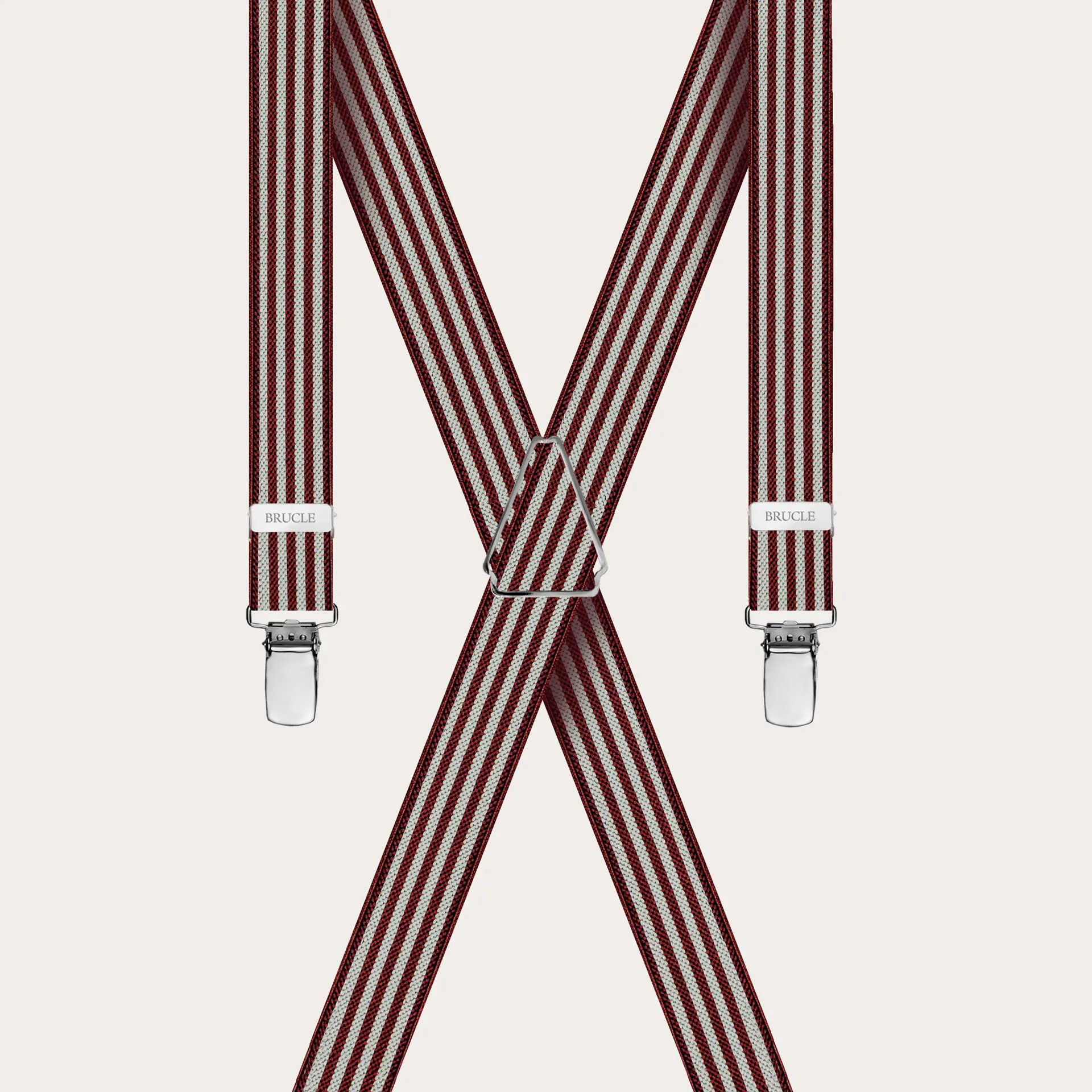 Hosenträger in X-Form mit Streifenmuster, Burgund und Perle