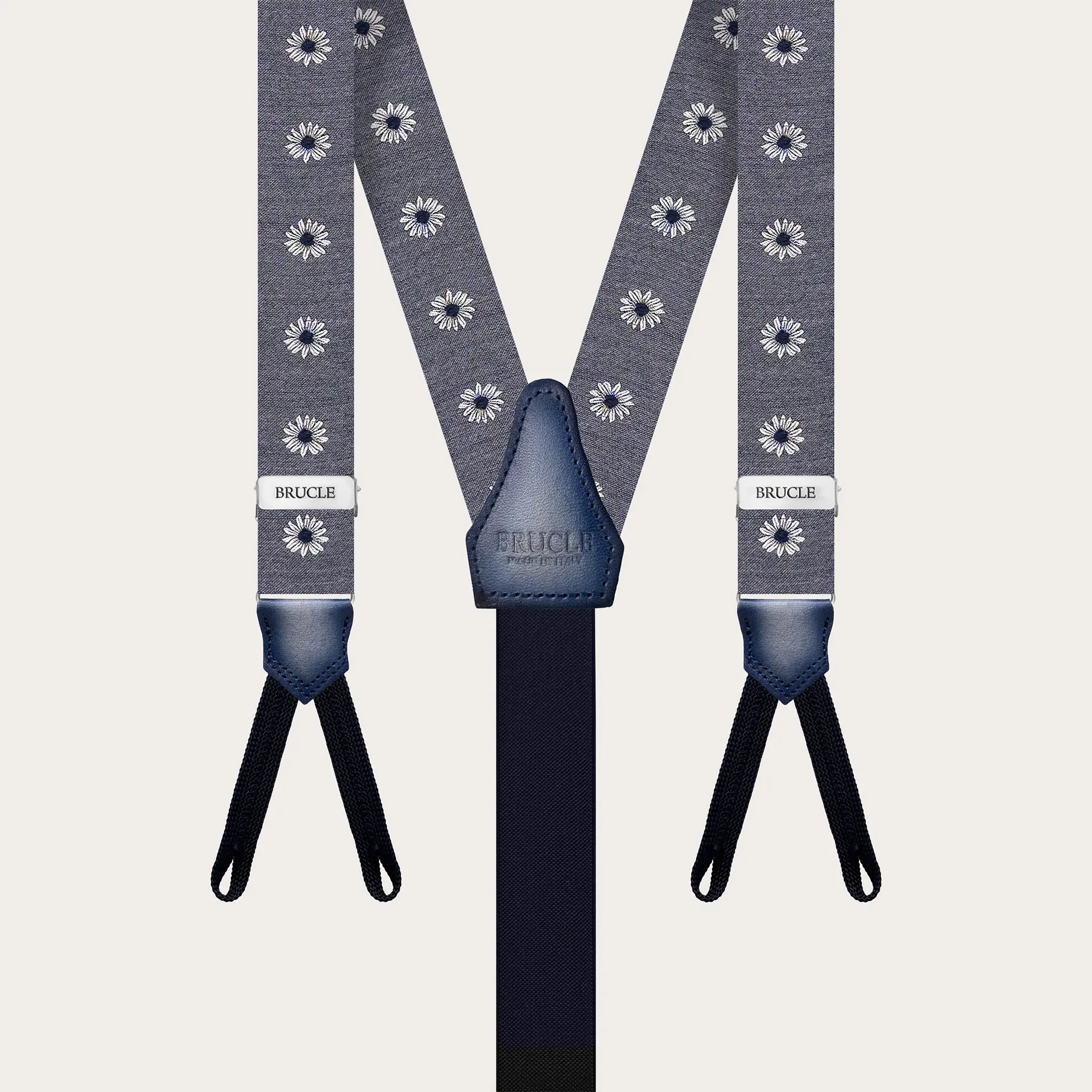 Graue schmale Hosenträger mit Blumenmuster für Knöpfe mit Knopflöchern
