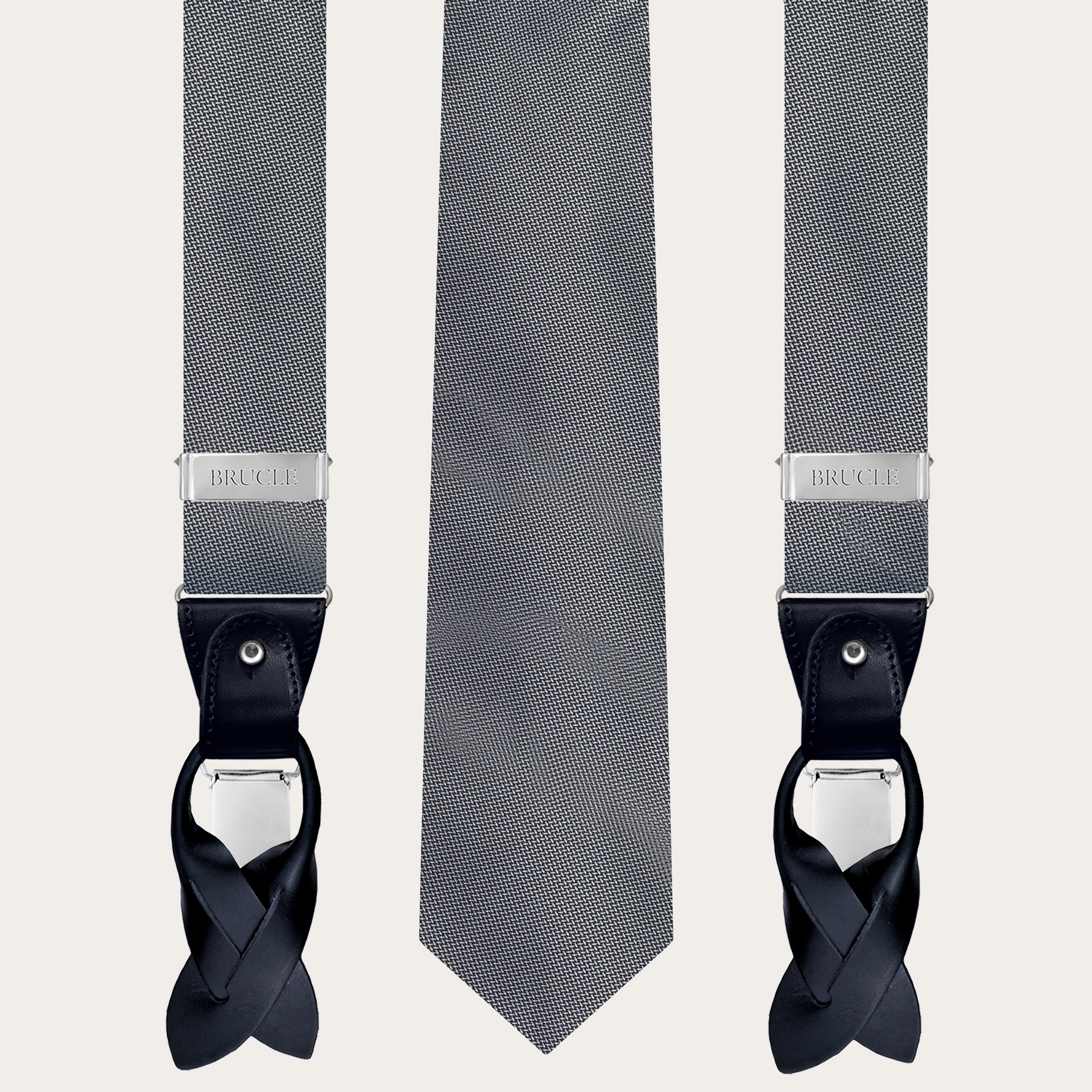 Package consisting of suspenders and tie made of Italian silk satin, grey.