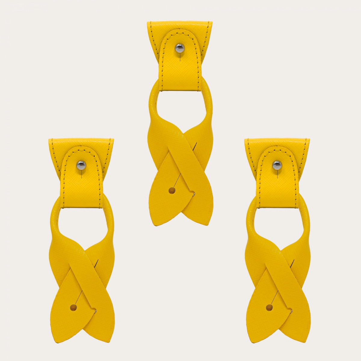 Set terminals and leather mustache for braces suspenders Y shape dual-use button end and strong convertible clips end, yellow saffiano leather.