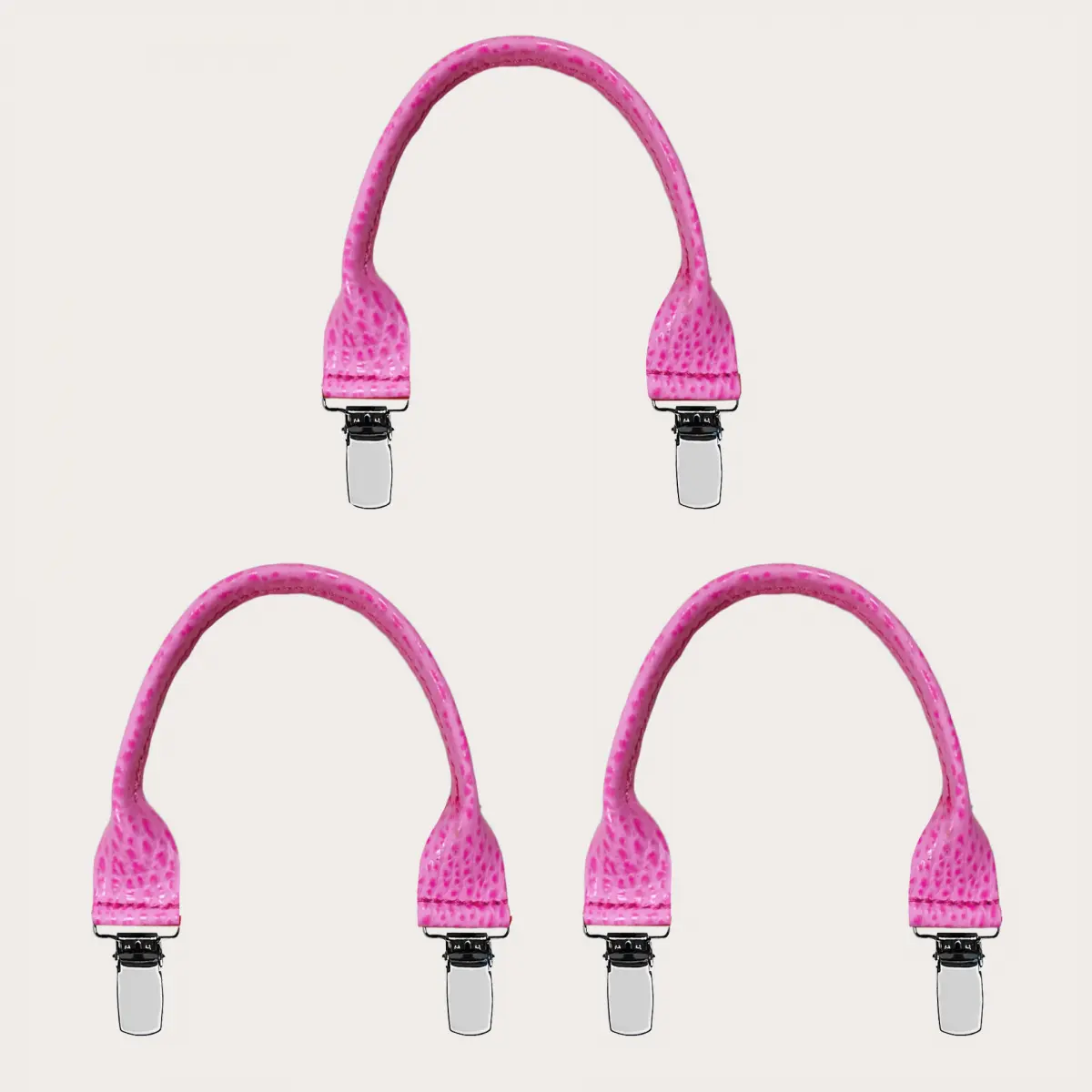 Transform your look with the Set of 3 pink leather braces with clips for suspenders.