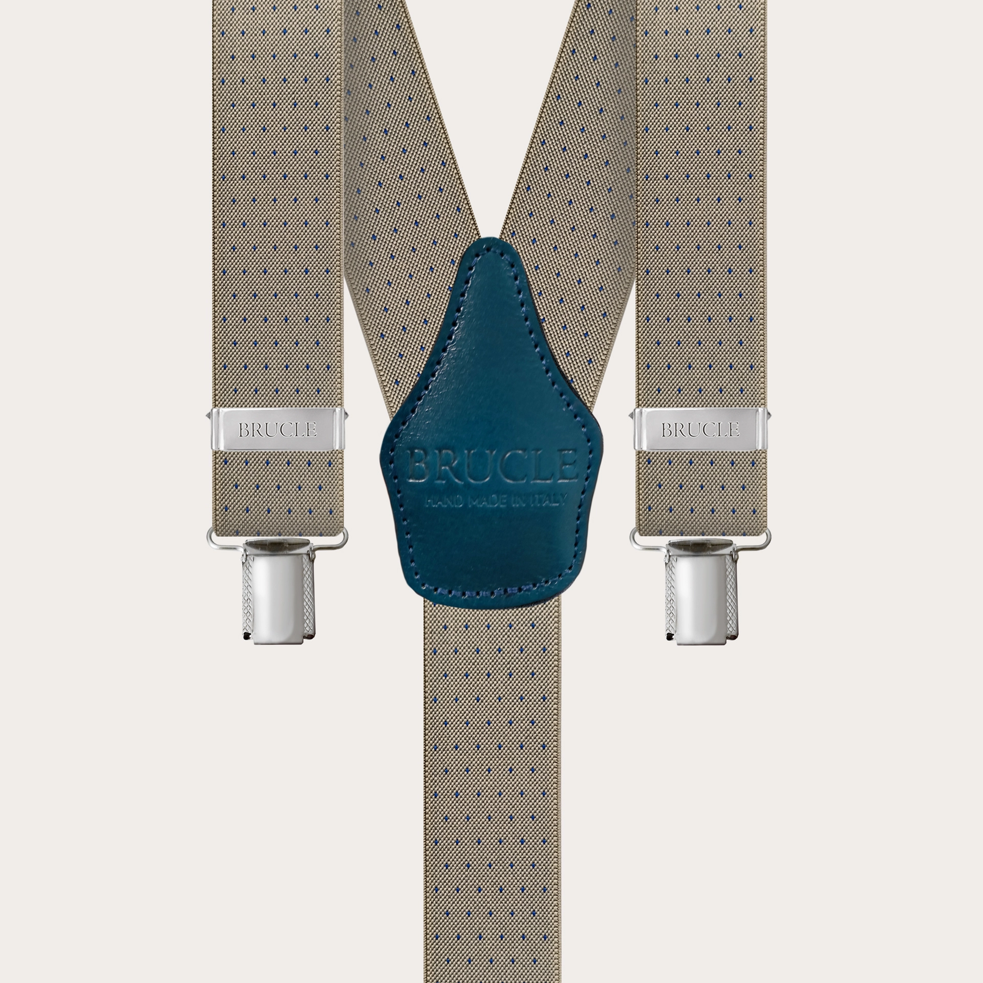 Tirantes en forma de Y con clip de sujeción, beige con estampado de puntos.