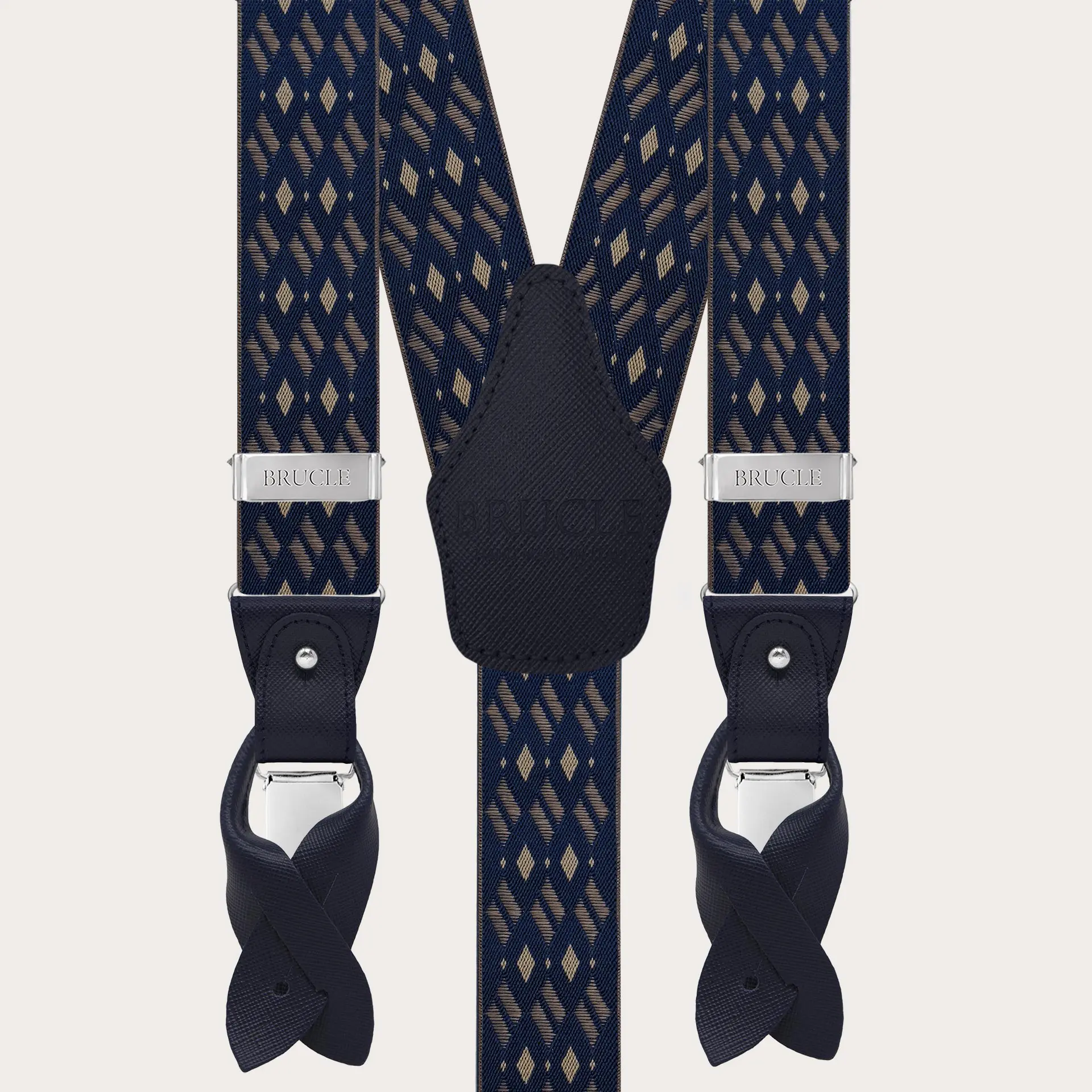 Tirantes para hombre de doble uso con diseño de rombos en azul marino y beige