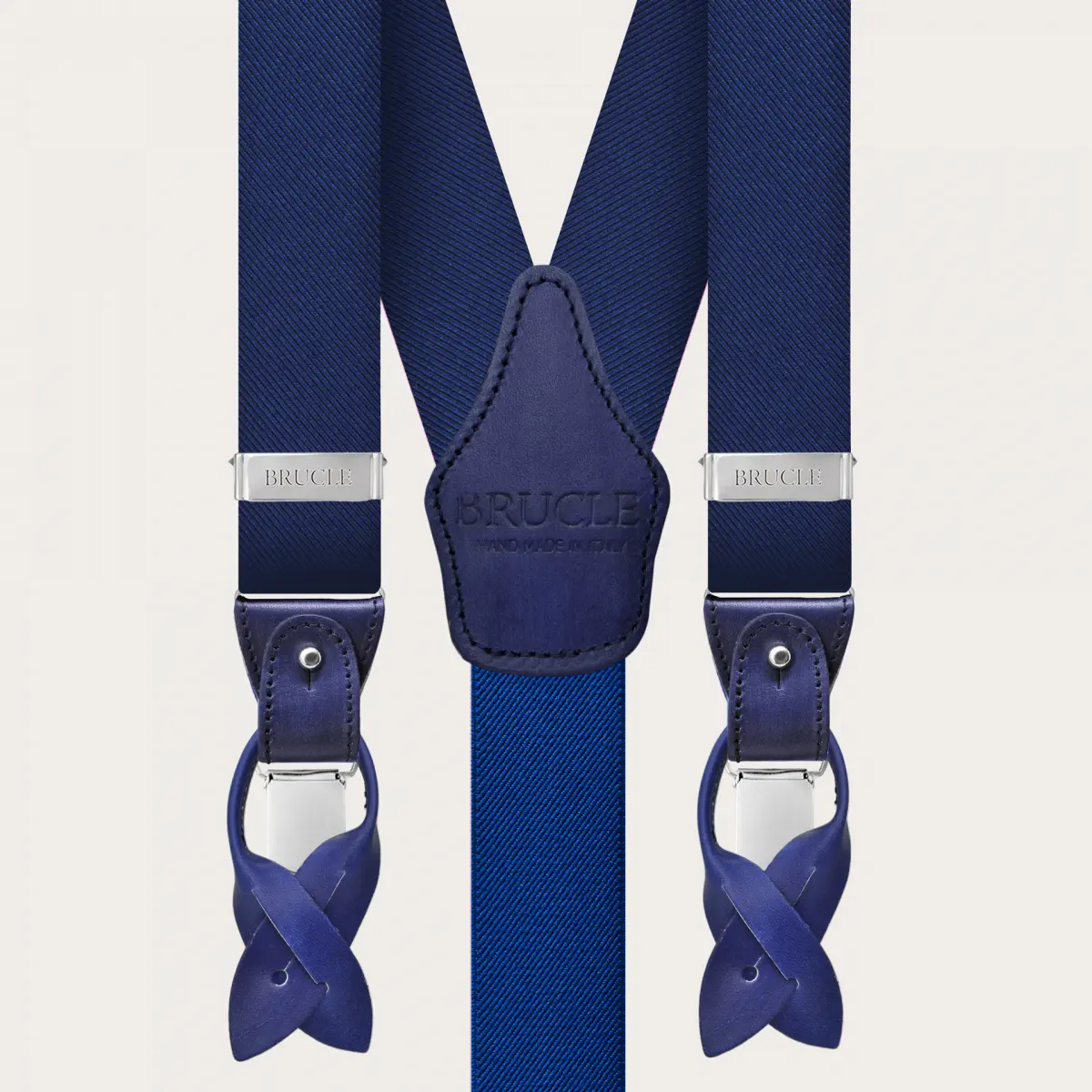 Sa couleur bleue profonde et vibrante convient parfaitement à toute occasion formelle ou cérémonie, ajoutant une touche de style et de sophistication, également grâce au contraste avec la tige arrière. Exprimez votre goût unique et votre personnalité avec la bretelle en soie bleue Brucle, l'apogée de l'élégance artisanale.