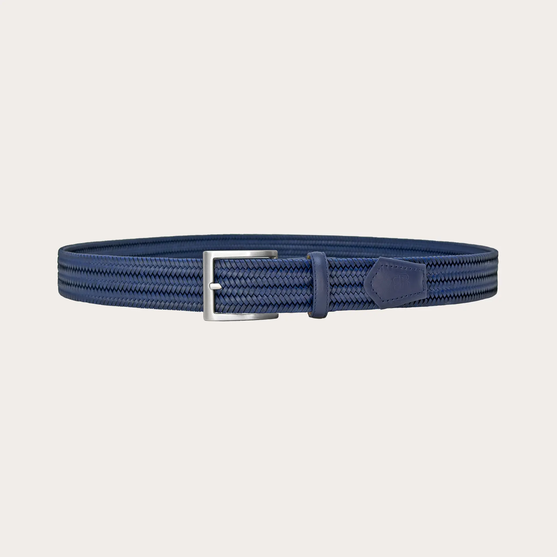 Cintura elastica intrecciata in cuoio rigenerato blu, con finiture in pelle tono su tono.
