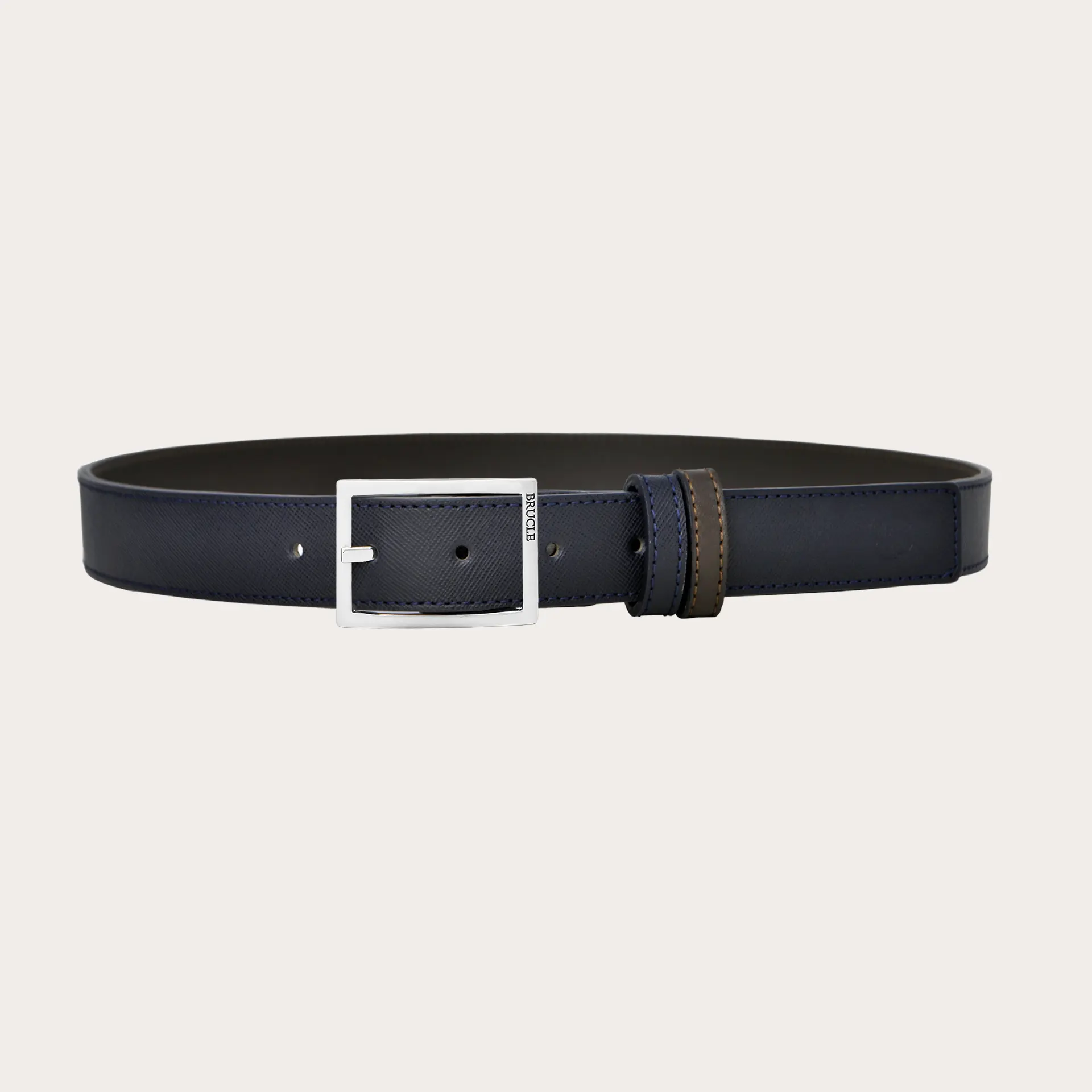 Cintura bassa reversibile saffiano blu navy e pelle liscia marrone cacao