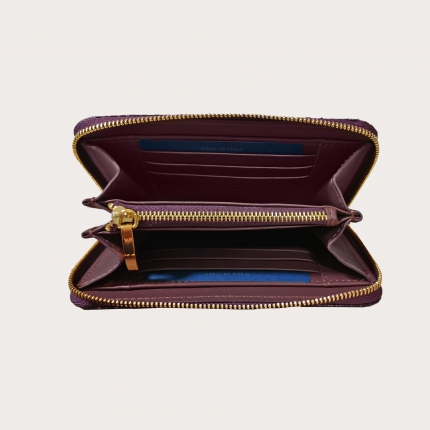 Originales Python-Portemonnaie mit Reißverschluss in zwei Farben, Grün und Lila, handpoliert. Eine exklusive Farbkombination, die die Schönheit des echten exotischen Pythonleders hervorhebt.