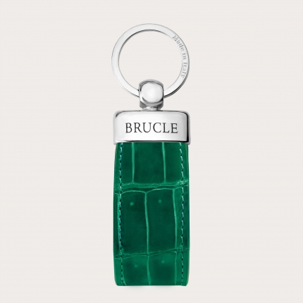 Glänzender grüner Krokodilleder-Schlüsselanhänger