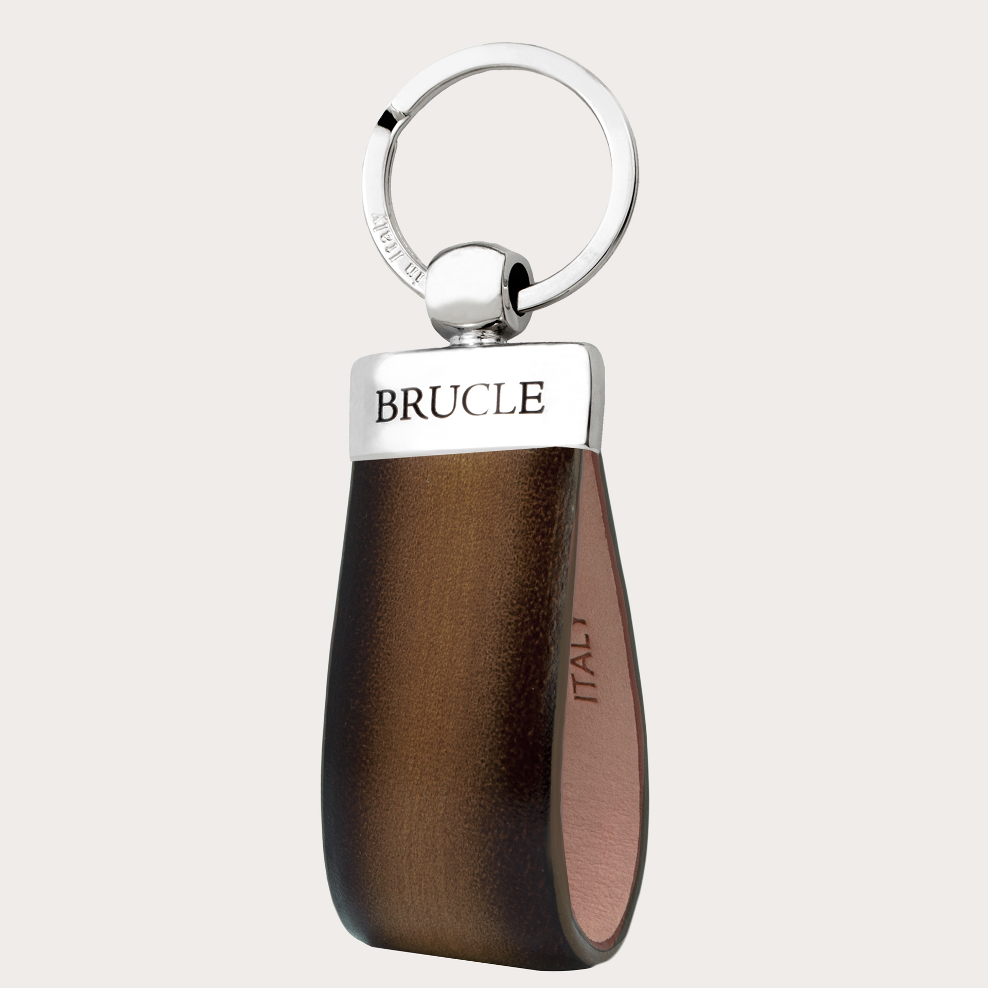 Faszinierend in seinen Schattierungen wird der BRUCLE Schlüsselanhänger aus handpatiniertem Leder hergestellt, das Brauntöne zeigt, die Eleganz und Stil verkörpern. Dieses Accessoire ist ein authentisches Beispiel für hochwertiges Made in Italy, in dem Handwerk und Tradition perfekt verschmelzen.