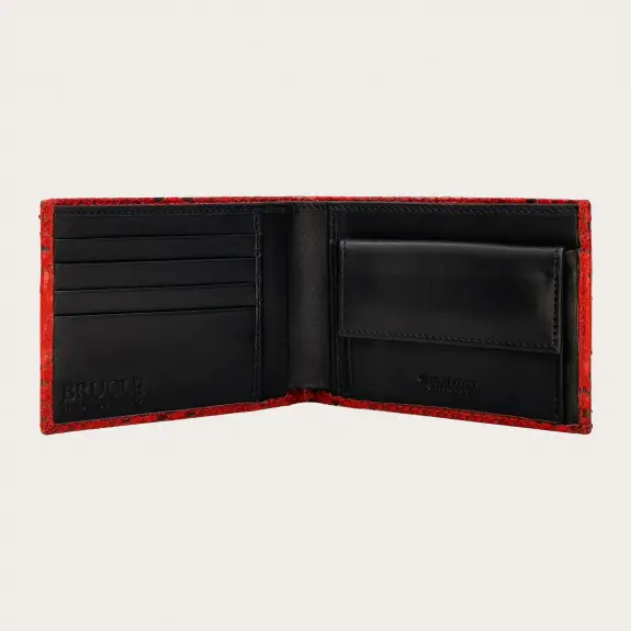 Rote Python-Geldbörse mit Münzfach, handgefertigt in Italien.