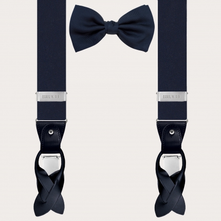 Set aus dünnen Hosenträgern und Fliege aus Seide, blau