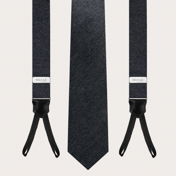 Zeremonien-Set komplett mit Krawatte und Hosenträgern, alles aus 100 % italienischer dunkelgrau meliert seide.
