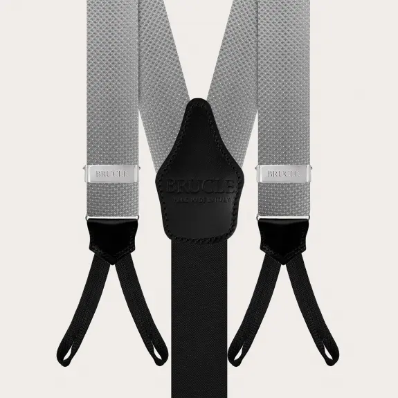 Pearl Gray Pin Dot Suspenders and Bow Tie Set for Buttons