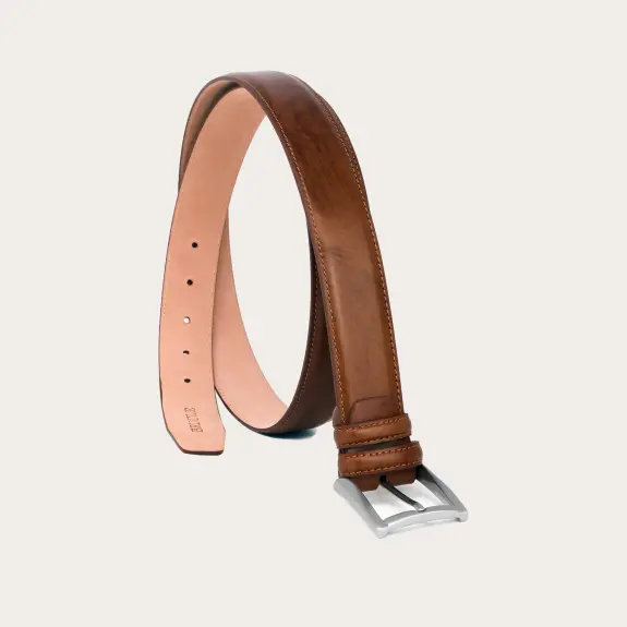 Extra langer Cognac-Gürtel aus handgetupftem Leder, nickelfrei