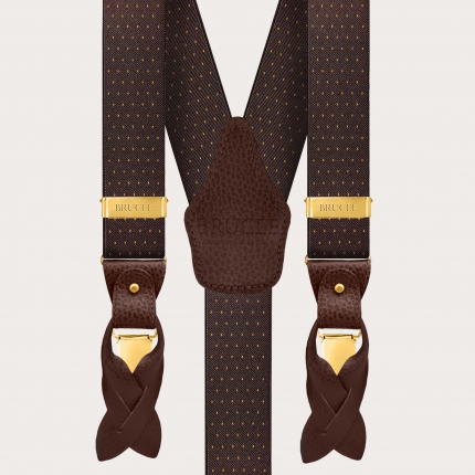 Schmalen braunen Hosenträger mit Knopflöchern in seide