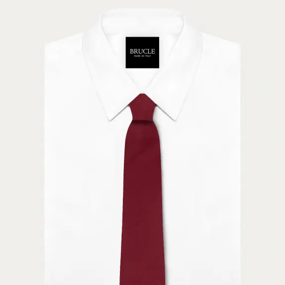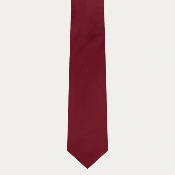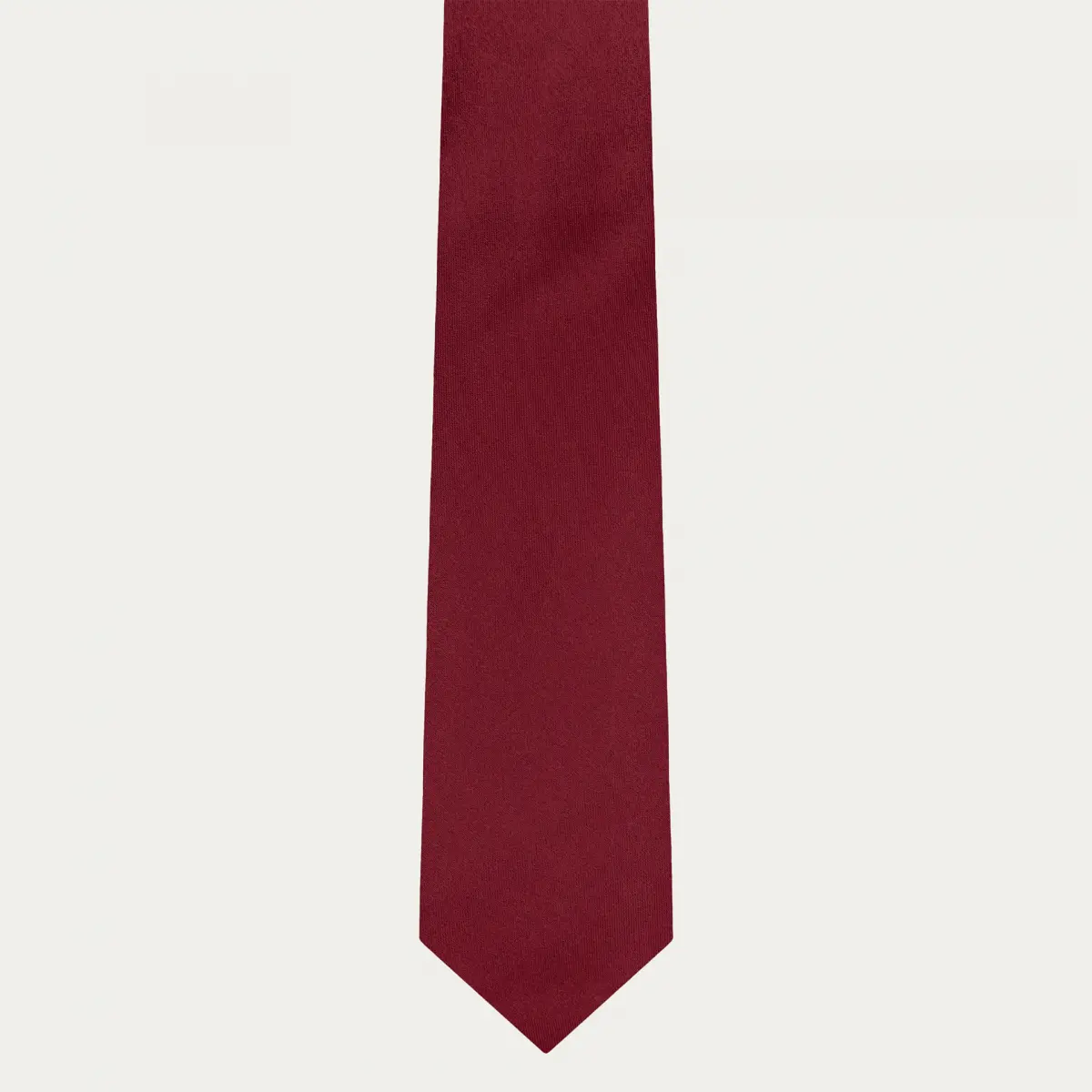 Elegante burgunderrote Seidensatin-Krawatte, ein vielseitiges und zeitloses Modell, leicht zu kombinieren.
