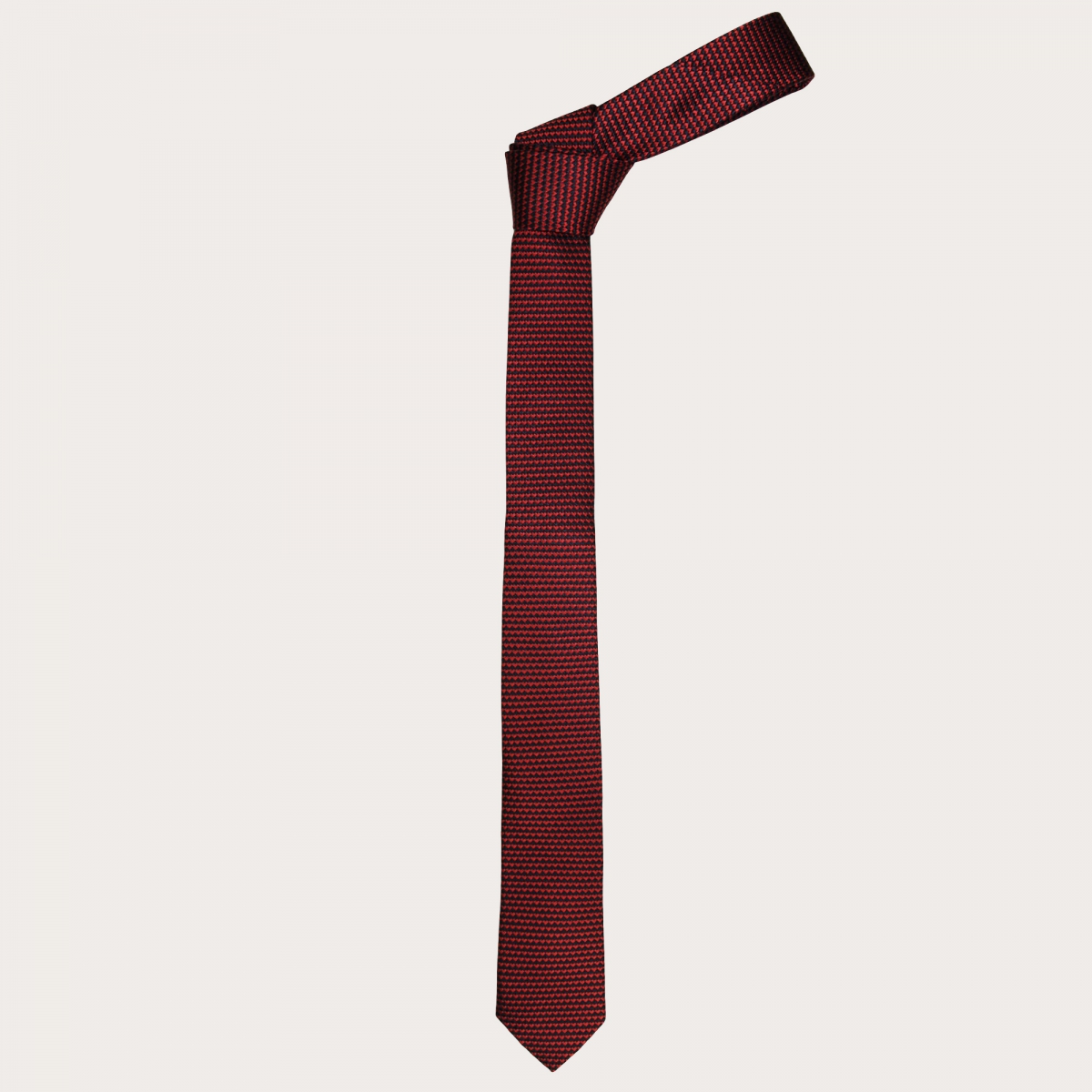 Die schmale rote Seidenkrawatte mit Jacquardmuster von BRUCLE ist das perfekte Accessoire für alle, die in ihrem Kleiderschrank eine klassische Farbe und einen Hauch von exklusivem Stil suchen.