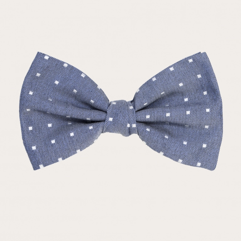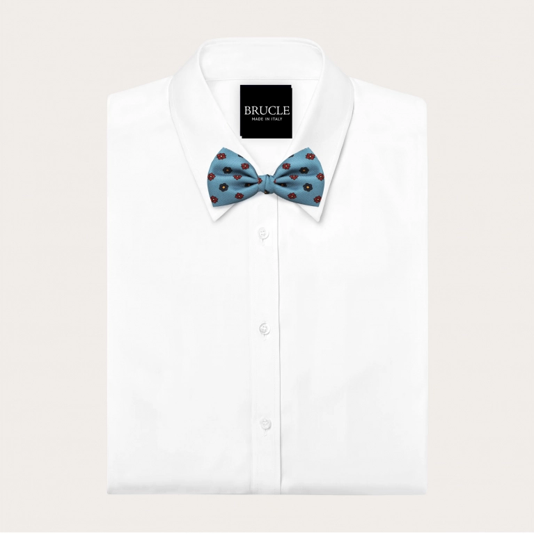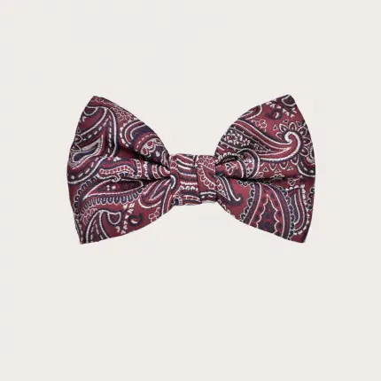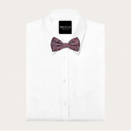 Blaue Fliege mit Paisley-Muster, ein zeitloser Klassiker aus hochwertiger Jacquard-Seide, gewebt in Como.