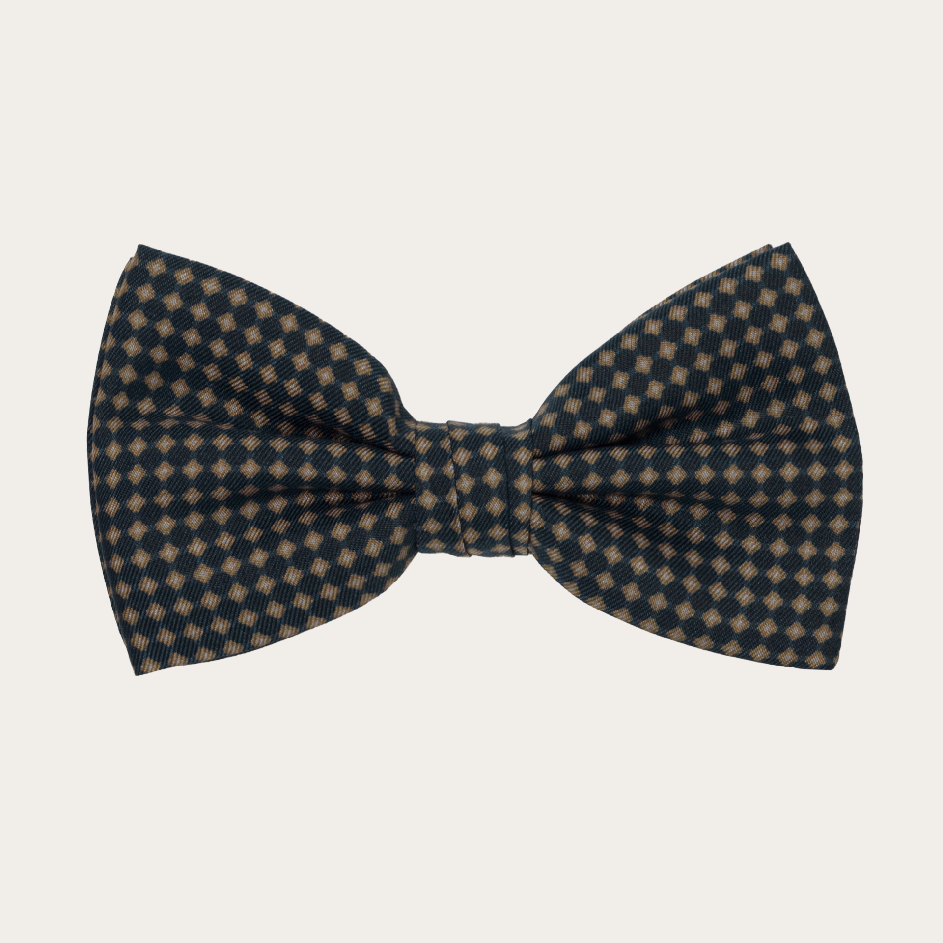 Marineblaue Fliege aus beigefarbener Seide mit Mikromuster