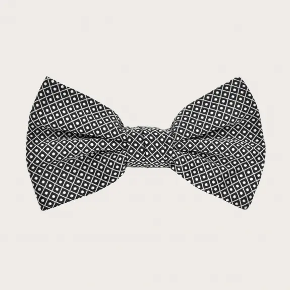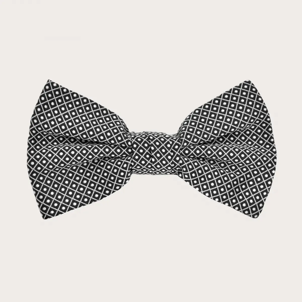 Diese schwarze Seidenfliege für Herren mit Pin-Punkt-Muster wird aus reiner Seide mit Jacquard-Webart in Como hergestellt, eine weltweite Exzellenz in der Seidenproduktion.