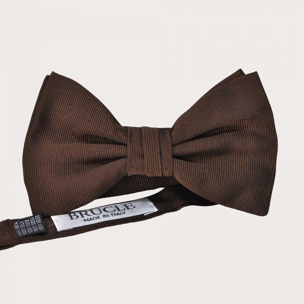 Braune Seidenfliege vorgebunden, ein luxuriöses handgefertigtes und Made in Italy Accessoire, das Ihrem Kleiderschrank eine Note von Eleganz und Stil verleiht.