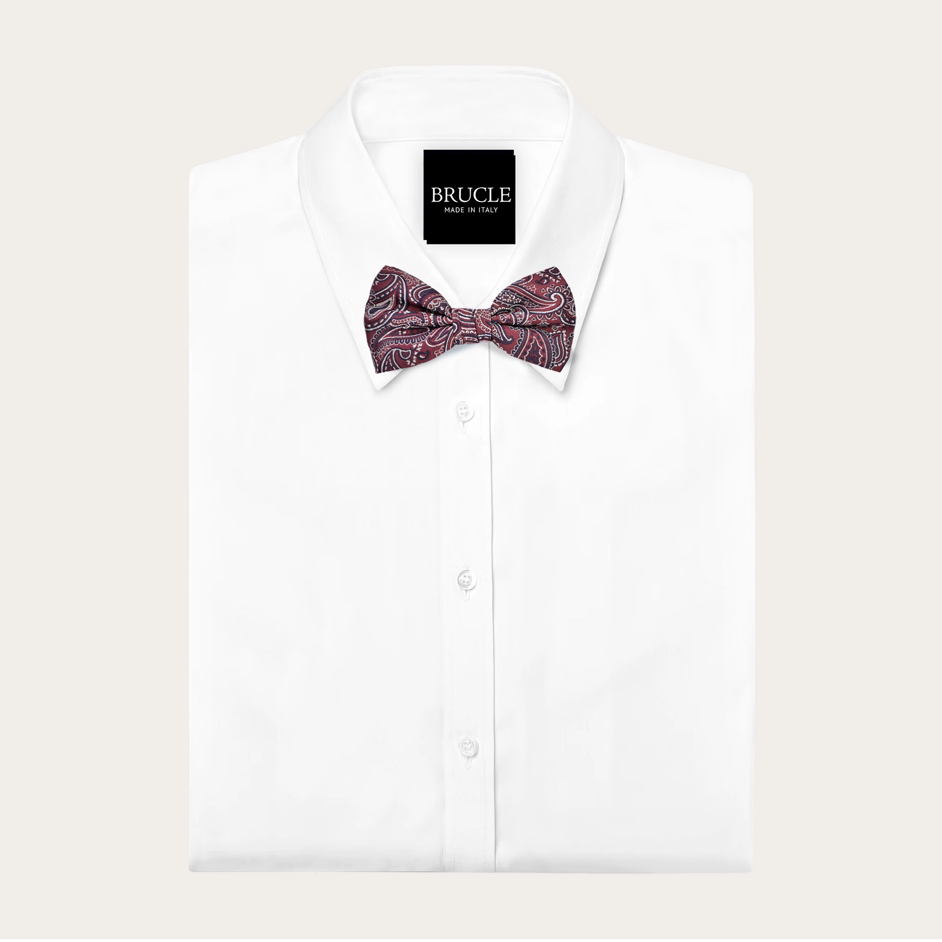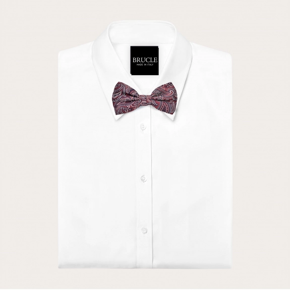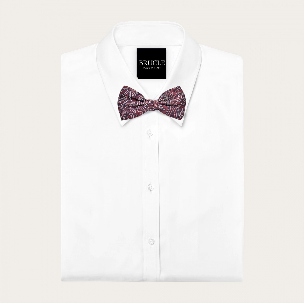 Herrenfliege in Bordeauxrot mit Paisley-Muster aus Jacquard-Seide