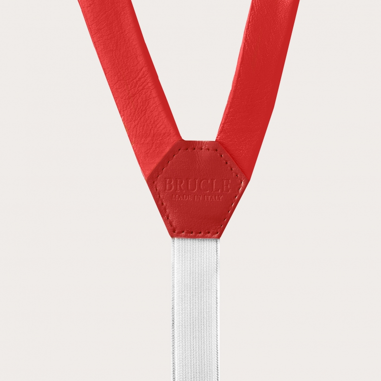 Y-Hosenträger aus weißem Leder. Elegante Hosenträger, die zu jeder Art von Outfit getragen werden können, von lässig schick bis zu den formellsten und elegantesten.