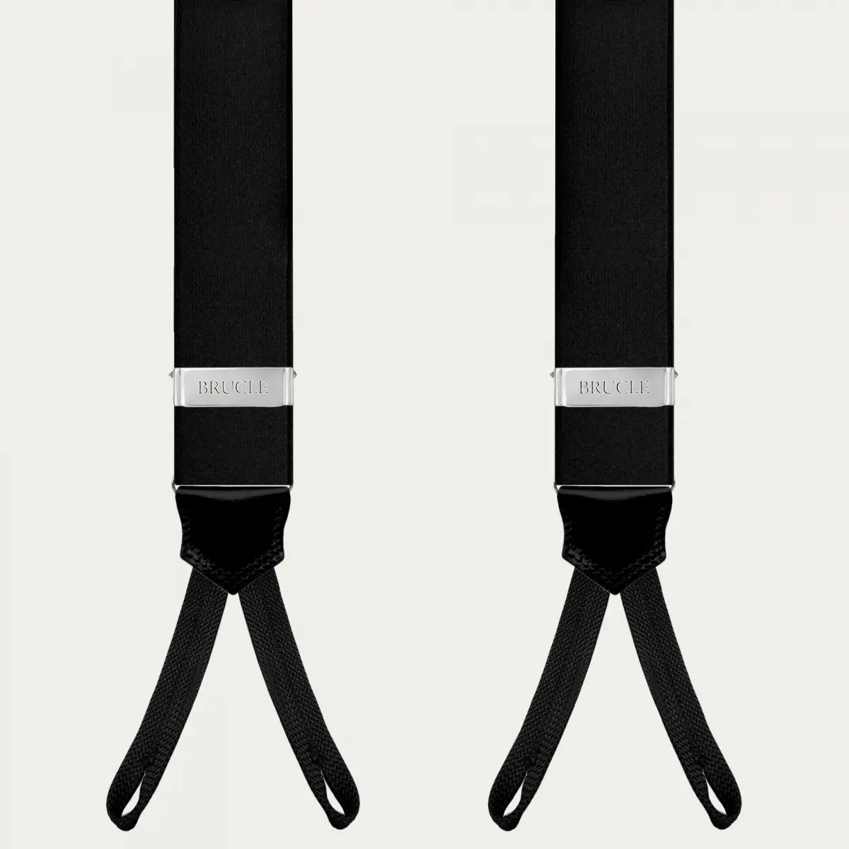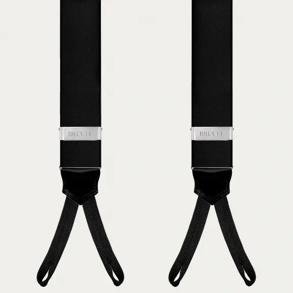 Elegante schwarze Hosenträger aus Satin mit Knopflöchern