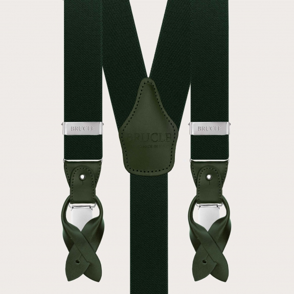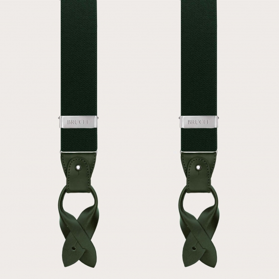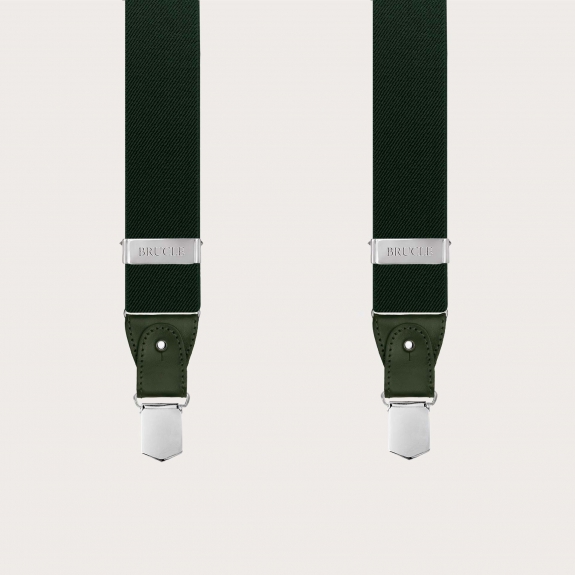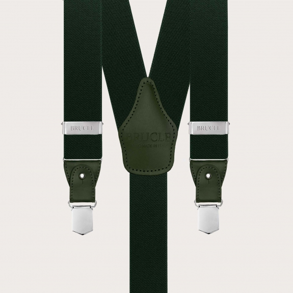 Elastische Hosenträger, nickelfrei, grün mit dunkelbraunem Leder
