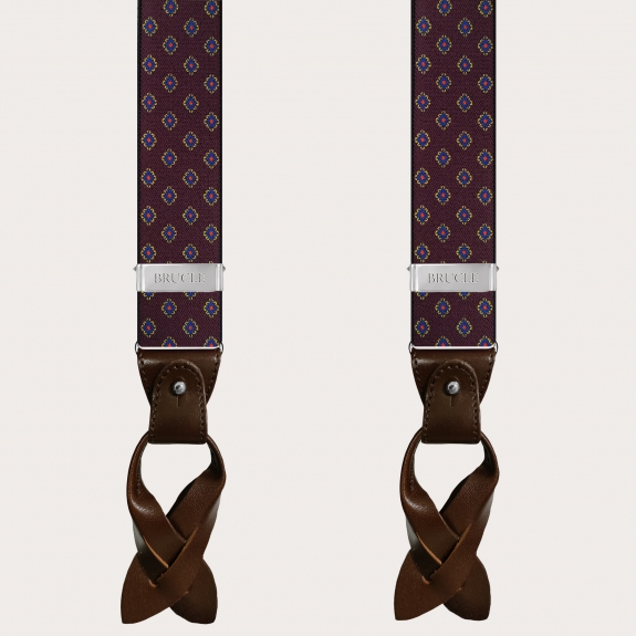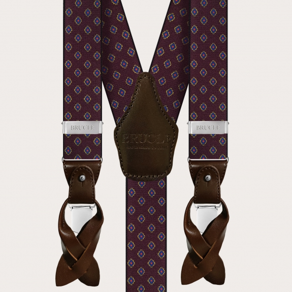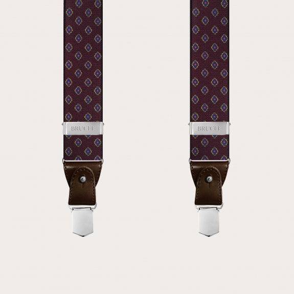 Elastische weinrote Hosenträger für Herren mit geometrischem Muster