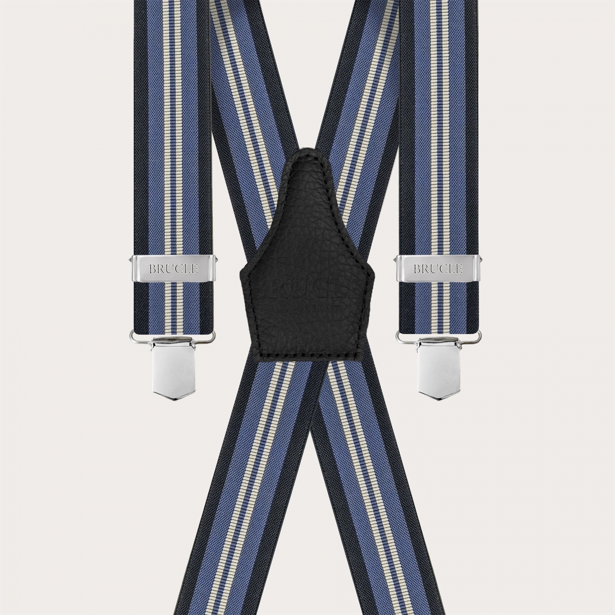 Hosenträger in X-Form mit blauen und hellblauen Streifen, nur mit Clips