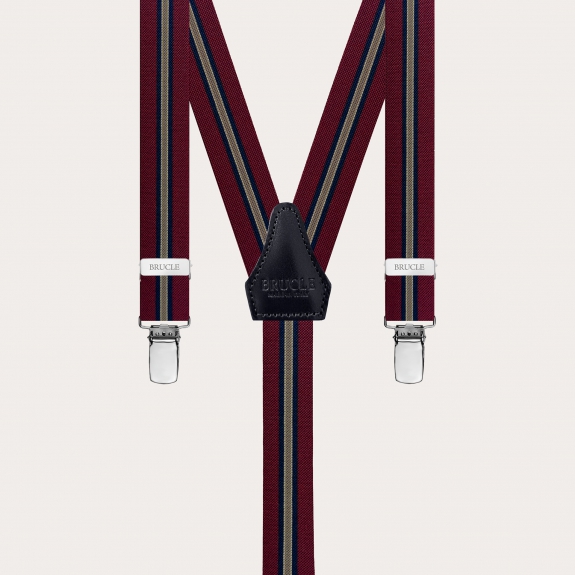 Bordeauxfarbene Regimentshosenträger mit 4 Clip-Befestigungen