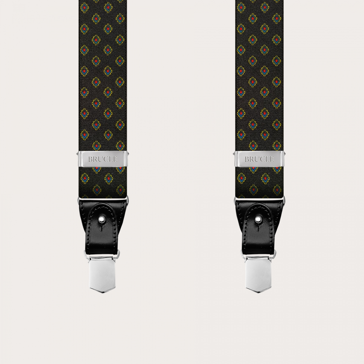 Ein Hosenträgermodell, das sowohl mit Clips als auch mit Lederknopflöchern verwendet werden kann, um maximale Vielseitigkeit und Haltbarkeit des Accessoires zu gewährleisten.