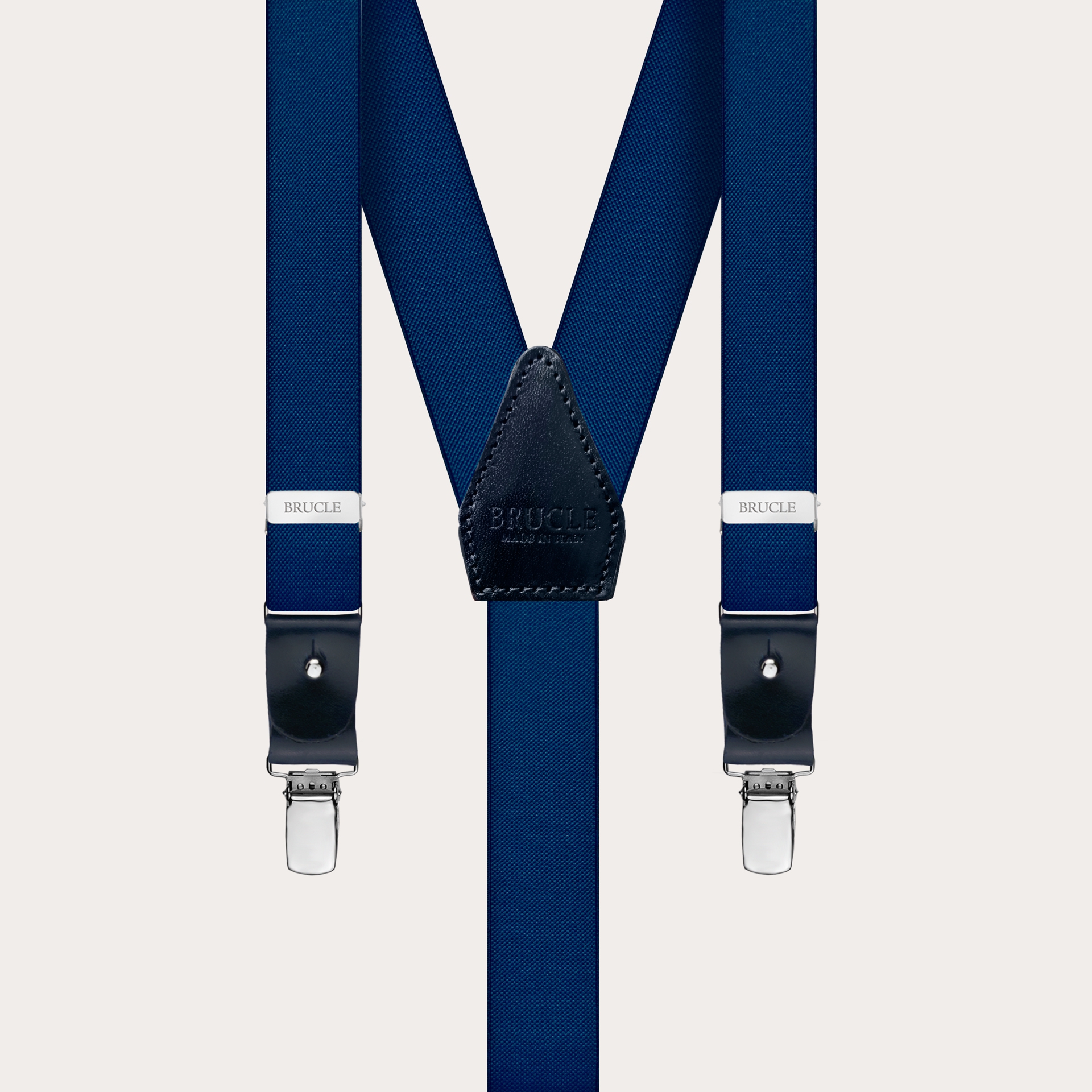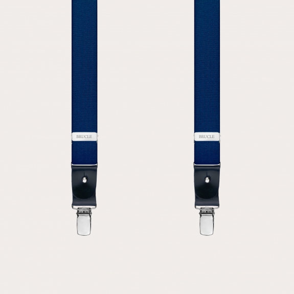 Enge Hosenträger aus elastischem blauem Satin, nur Clips