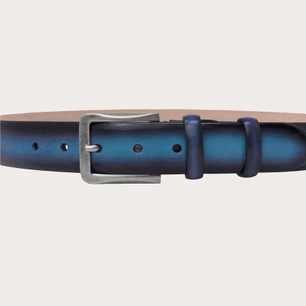 Hoher blauer Gürtel aus handgefärbtem und schattiertem Leder