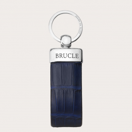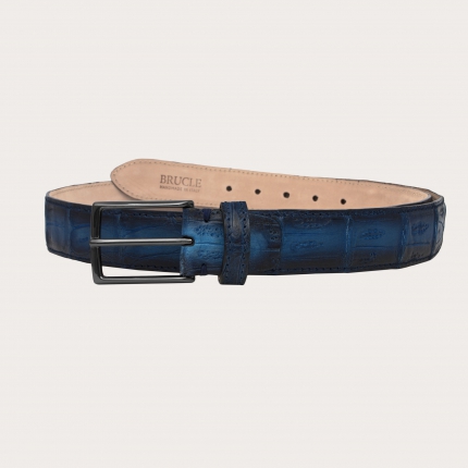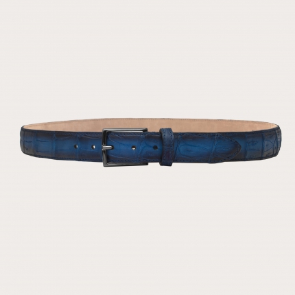 Luxusgürtel aus Alligator- oder Krokodilleder mit nickelfreier Schnalle, Blau mit schwarzer Schattierung