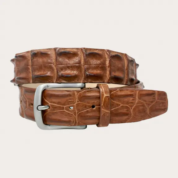 Handkolorierter Krokodilgürtel, gold nuanciert braun