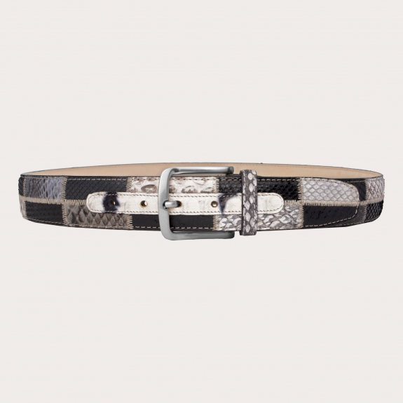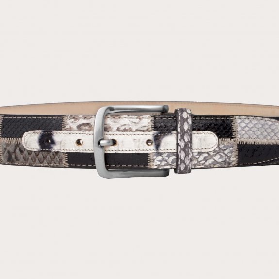 Echter Python-Gürtel, handgefertigt in Italien mit mehrfarbigem Patchwork. Ein einzigartiges Stück, das nicht unbemerkt bleibt.
