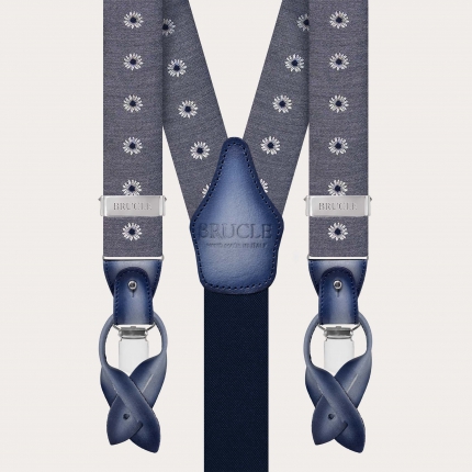 Feine hellblaue Seidenhosenträger für Knöpfe oder Clips