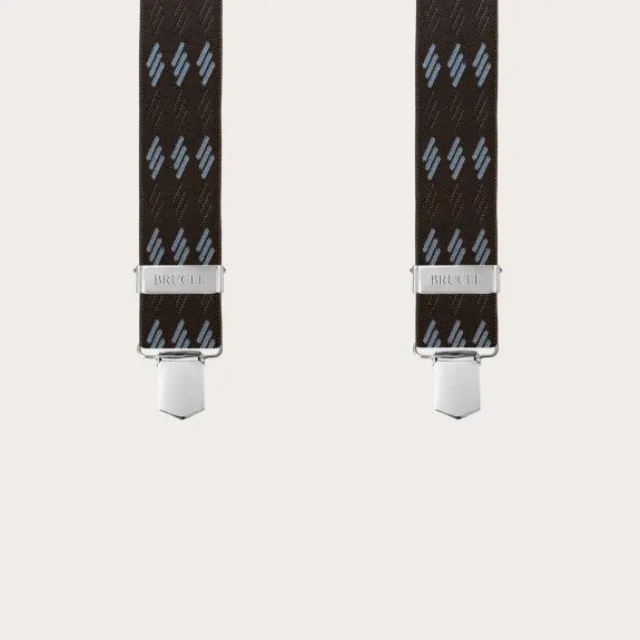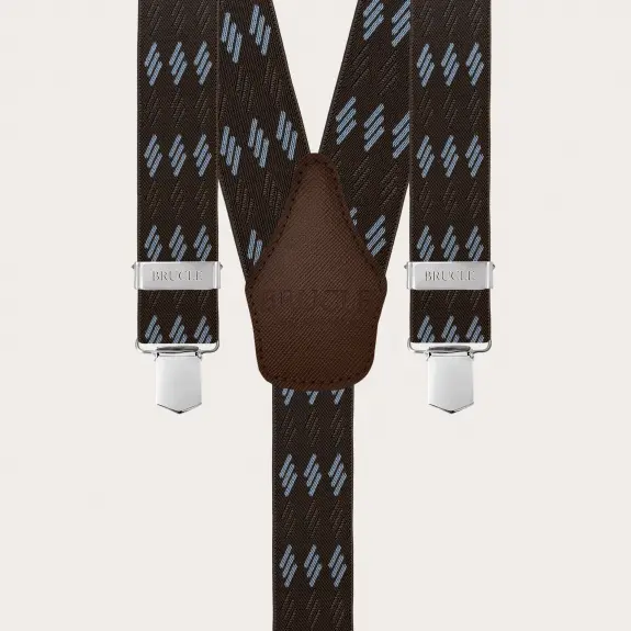 Braune elastische Hosenträger mit blauen Streifen und Clips