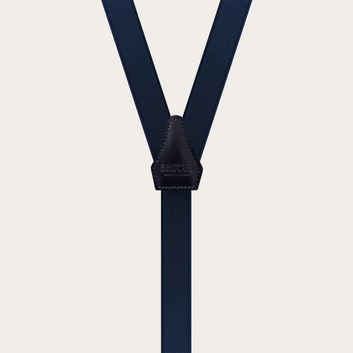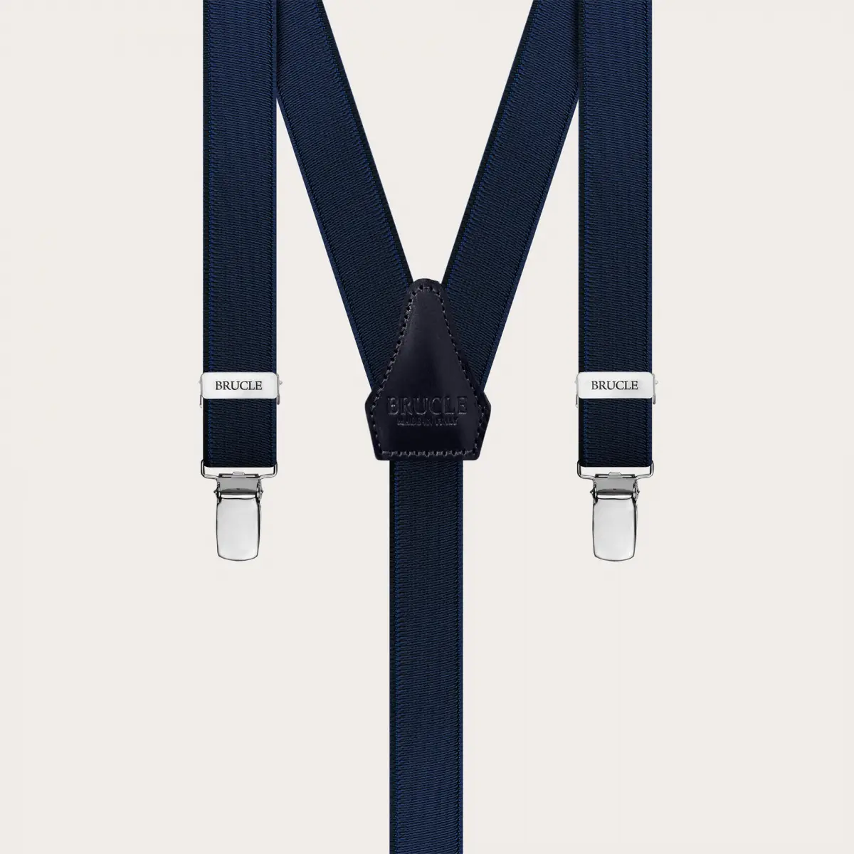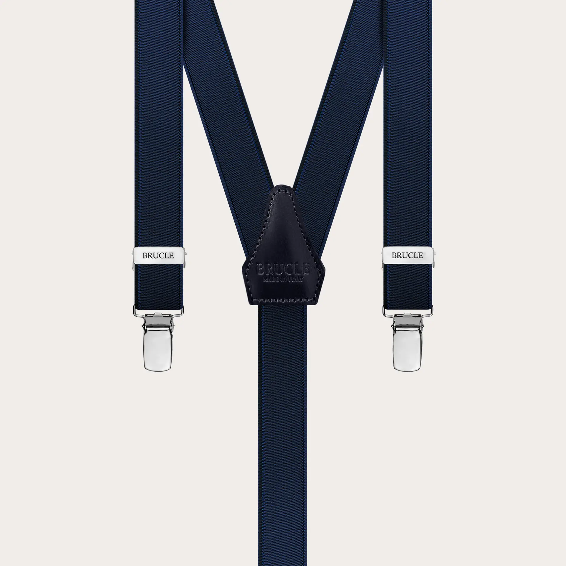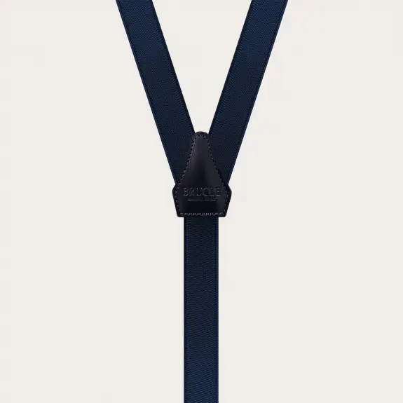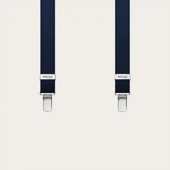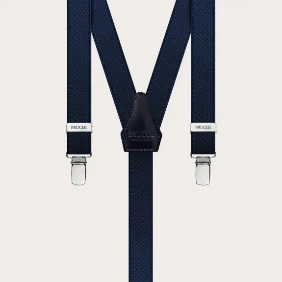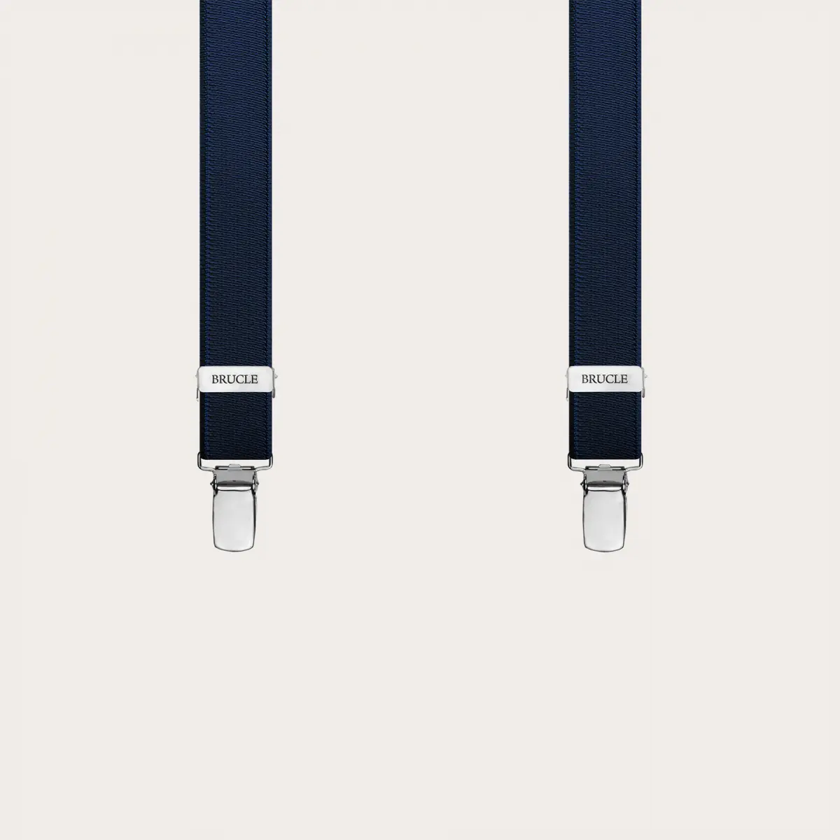 Enge Hosenträger aus elastischem blauem Satin, nur Clips