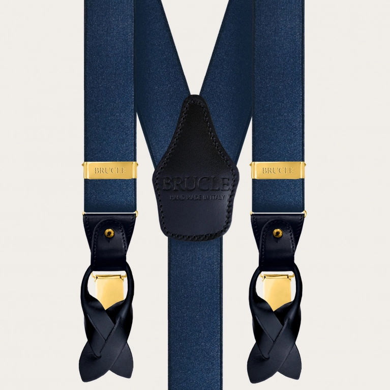 Enge Hosenträger aus elastischem blauem Satin, nur Clips