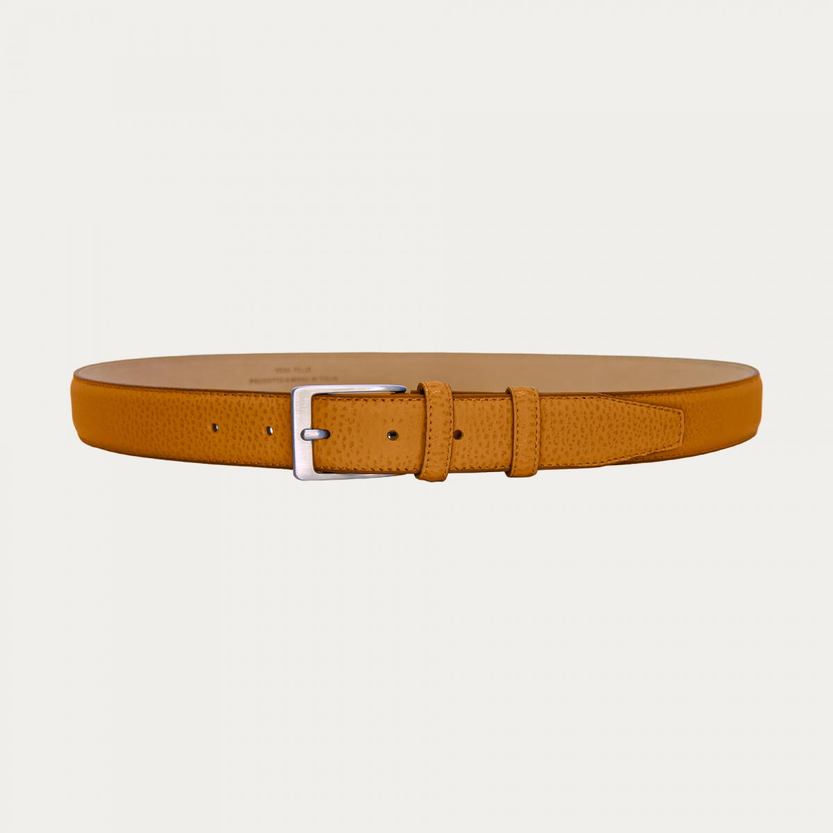 Original Gürtel aus gehämmertem, gefärbtem Leder mit einer Höhe von 3 cm. Ein trendiges Modell in einer leicht zu kombinierenden Farbe, perfekt, um Ihrem Outfit einen Hauch von Helligkeit zu verleihen.