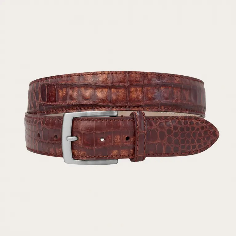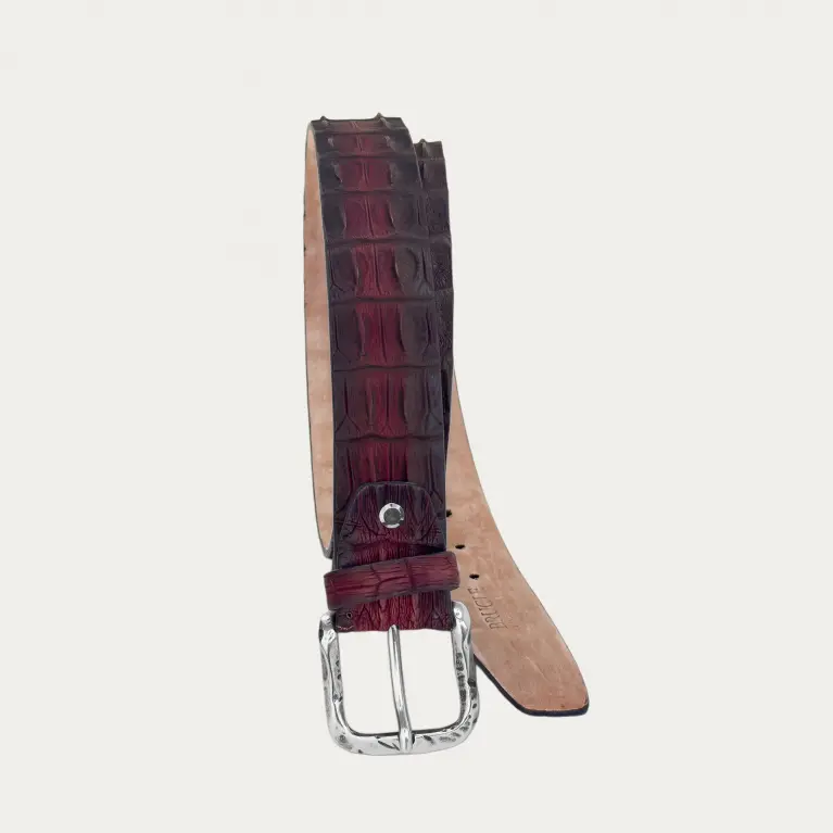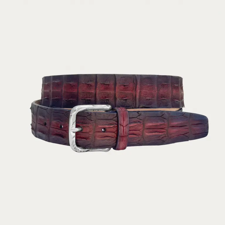 Lässiger Gürtel aus Krokodilleder, bordeaux