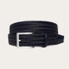 Geflochtener elastischer Schwarzer Gürtel mit handgepufferten zweifarbigen Lederteilen