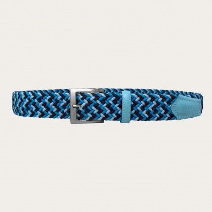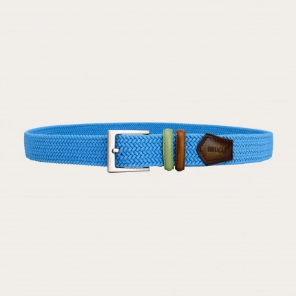 Geflochtener elastischer Gürtel aus regeneriertem Leder mit einem exklusiven zweifarbigen Muster, das Braun und Cognac verbindet.