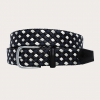 Exklusiver Melange-Elastikgürtel in Schwarz und Beige mit einer polierten nickelfreien Schnalle und Oberflächen aus echtem genarbtem Rindsleder.