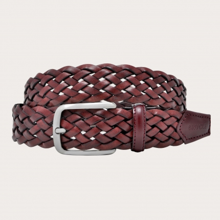Geflochtener Gürtel aus regeneriertem Leder, Rot und Braun